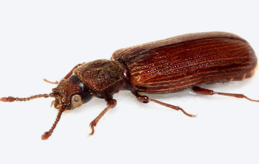 - Хлебный жук. Взрослые особи этого вида достигают длины до 3,8 мм. У них есть слегка вытянутое тельце, короткие усики, и они внешне напоминают табачного жука.